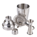 550ml Cobbler shaker, 15/30ml spirit measure and Hawthorne cocktail strainer.
