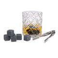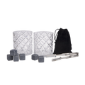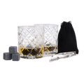 A must have for any whisky lover, this set features two decoratively cut whisky glasses, eight high quality granite whisky rocks with a velvet storage bag, complete with stainless steel ice tongs.
