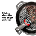 - Smart bristle pattern effectively cleans flat and ridged cookware