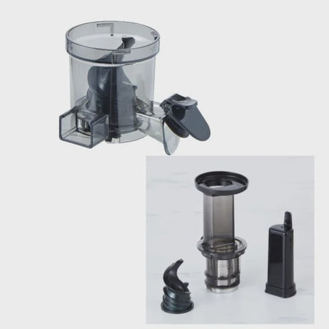 Includes: 1 x slow juicer, 1 x 600ml juice container, 1 x 450ml food residue container, 1 x cleaning brush, 1 x instruction manual