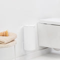 Uphold your style standards even in the smallest room of your house with this minimalist Brabantia MindSet Toilet Roll Dispenser. Happily holds 2 spare toilet rolls. Its closed body protects the rolls from dust and splashes - very hygienic, and very discreet. Time to change rolls? Bring one up with the smart lift system. Classy, clean and clever.