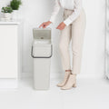 Feed your empty packaging, bottles, cans - and anything else you want sorted - to this handy 40 litre Brabantia Sort & Go Recycle Bin. It fits snugly in corners, flat against the wall, and has a large handle for easy carrying and emptying. Just what you need for a smooth running recycling operation at home!