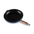 Cast iron fry pans distribute heat evenly for better cooking results and retains heat effectively while requiring only low to medium cooking temperatures. This is ideal for frying meat, seafood or fish. The wooden handle makes it easier to cook as the wood does not get hot when cooking on stove top. Note, however, cast iron cookware with wooden handles are not oven or dish-washer safe. This product is made in France. It provides all the benefits of cooking with cast-iron including compatibility with use of induction and other cook tops.