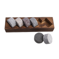 - Set of 6 granite whisky discs with wood display tray.