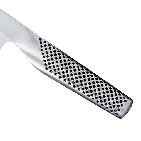 The G-11 is made from CROMOVA 18 stainless steel, specially developed by GLOBAL as it holds a razor-sharp edge and resists rust, stains and corrosion. Ice tempered and hardened to Rockwell C56-58, each knife is carefully weighted by filling the handles with sand to achieve the optimum weight and perfect balance. Other unique features include its smooth contours and seamless construction which eliminates food and dirt traps offering the ultimate in safety and hygiene.