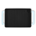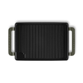 The rectangular grills are great for meat, fish, seafood, fruits, vegetables, and brochettes - giving you The rectangular grills are great for meat, fish, seafood, fruits, vegetables and brochettes - giving you professional seared marks and flavour every time. The grooves allow cooking with less oil while the flat corner collects excess oil - which makes cooking with this grill healthier. This product is made in France. It provides all the benefits of cooking with cast-iron including compatibility with use of induction and other cook tops.