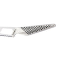 The GS-10 is a universal cheese knife suitable for all different kinds of cheese, whether you like a hard cheddar or indulge in soft creamy brie. The GLOBAL® cheese knife features holes in the serrated blade to make it easier to release sticky cheeses and has two prongs suitable for serving.
