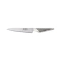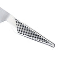 The GS-13 is made from CROMOVA 18 stainless steel, specially developed by GLOBAL® as it holds a razor-sharp edge and resists rust, stains and corrosion. Ice tempered and hardened to Rockwell C56-58, each knife is carefully weighted by filling the handles with sand to achieve the optimum weight and perfect balance. Other unique features include its smooth contours and seamless construction which eliminates food and dirt traps offering the ultimate in safety and hygiene. The acute 15-degree angle cutting edge provides unsurpassed performance and superior edge retention..