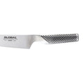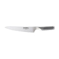 The G-3 is made from CROMOVA 18 stainless steel, specially developed by GLOBAL as it holds a razor-sharp edge and resists rust, stains and corrosion. Ice tempered and hardened to Rockwell C56-58, each knife is carefully weighted by filling the handles with sand to achieve the optimum weight and perfect balance. Other unique features include its smooth contours and seamless construction which eliminates food and dirt traps offering the ultimate in safety and hygiene. The acute 15-degree angle cutting edge provides unsurpassed performance and superior edge retention.