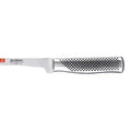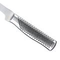 The G-30 is made from CROMOVA 18 stainless steel, specially developed by GLOBAL as it holds a razor-sharp edge and resists rust, stains and corrosion. Ice tempered and hardened to Rockwell C56-58, each knife is carefully weighted by filling the handles with sand to achieve the optimum weight and perfect balance. Other unique features include its smooth contours and seamless construction which eliminates food and dirt traps offering the ultimate in safety and hygiene. The acute 15-degree angle cutting edge provides unsurpassed performance and superior edge retention.