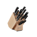 - 1x Paring Knife 9cm, 1x Utility Knife 12cm, 1x Serrated Utility Knife 14cm, 1x Sandwich Knife 14cm, 1x Fillet Knife 16cm, 1x Cleaver 16cm, 1x Carving Knife 20cm 1x Bread Knife 20cm, 1x Chef's Knife 20cm, 1x Meat Fork 16cm, 1x Honing Steel, 1x Shears, 1x Beechwood Knife Block.
