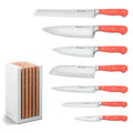 - This gorgeous 8-piece Knife Block set includes: 1x Paring Knife 9cm, 1x Serrated Utility Knife 14cm, 1x Utility Knife 16cm, 1x Chef's Knife 16cm, 1x Chef's Knife 20cm, 1x Santoku 17cm, 1x Precision Double-Serrated Bread Knife 23cm, 1x White Loft Knife Block (7 Slots).