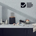 The Furi Stone knife block has been artfully crafted to complement wooden and stone kitchen finishes and to be the centrepiece of your kitchen. Thoughtfully designed to securely store your knives and keep them in pristine condition. Universal slots allow you to organise the knives in the positions that suit you.