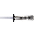 The G-38 sharpening steel utilises one of the earth's toughest natural substances to create a perfect and accurate sharpening tool. The GLOBAL Diamond Sharpening Steel is made using a solid core of CROMOVA 18 Stainless Steel, which creates exceptional strength and balance. This is then coated in over 2 million synthetic diamond particles, which are galvanised applied for accuracy. This steel can both hone and realign your knifes edge.