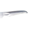 The GLOBAL® SAI collection follows in the same tradition as the GLOBAL Classic knives and are made in the same fashion by skilled Japanese craftsmen in Yoshikin's factory. An entirely new handle design incorporates an ergonomic thumb-rest to ease the cutting motion. The blades are crafted from special CROMOVA 18 SANSO material, comprising three layers of Stainless Steel.