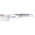 The GLOBAL® SAI collection follows in the same tradition as the GLOBAL Classic knives and are made in the same fashion by skilled Japanese craftsmen in Yoshikin's factory. An entirely new handle design incorporates an ergonomic thumb-rest to ease the cutting motion. The blades are crafted from special CROMOVA 18 SANSO material, comprising three layers of Stainless Steel.