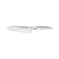 The GLOBAL® SAI collection follows in the same tradition as the GLOBAL Classic knives and are made in the same fashion by skilled Japanese craftsmen in Yoshikin's factory. An entirely new handle design incorporates an ergonomic thumb-rest to ease the cutting motion. The blades are crafted from special CROMOVA 18 SANSO material, comprising three layers of Stainless Steel.