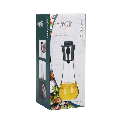 Store and spray your favourite oils for grilling, roasting, basting, barbecuing, salads and more with the Appetito Glass Oil Sprayer.