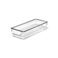 The OXO Good Grips Fridge Organization System is an extensive collection of bins, drawers, shelves, risers and accessories to help streamline your refrigerator. Never run out of eggs again with our Egg Bin with Removable Tray. The sturdy accessory holds up to 20 fragile eggs with room for stacking. The clear bin and lid keep them safe, while you keep an eye on them when you need to restock. The removable egg tray allows for easy, thorough cleaning of any cracks and spills, while the lid adds an extra layer of protection. The Egg Bin has rounded handles for a comfortable grip and smoothly slides in and out of the fridge when you need it. It measures 5.75 in x 14.8 in x 3 in/14.6 cm x 37.6 cm x 7.62 cm and handwash only.