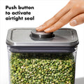 The OXO Good Grips 1.6 L POP Container with Scoop is an elevated and space-efficient solution for keeping dry foods fresh and kitchens organized. Push the button on the stainless steel lid to create an airtight seal; press it again to pop it up for easy opening. More shapes and sizes provide more possibilities for storing everyday must-haves like flour, sugar, coffee, cereal, oatmeal, grains, pasta, and spices. With a handy fill line to guide you, curved corners for smooth dispensing, and sturdy, BPA-free construction, these canisters take tidying to the next level. POP Containers aren’t just for kitchens: Use them any place you want more organization. OXO expanded the possibilities of POP with a line of solution-based accessories that conveniently attach to lids. Additional accessories sold separately.