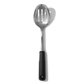 Whether you're draining broccoli for a quick side dish or straining pasta before serving, having a sturdy slotted spoon makes quick work of your favorite recipes. The OXO Good Grips Stainless Steel Slotted Spoon is designed to efficiently drain liquid as you scoop food from pots and pans. The sturdy stainless steel head holds up to heavy use, the soft grip is always comfortable, and the non-slip handle stays securely in hand, whether wet or dry. The polished design makes this spoon perfect in kitchens and at the dinner table. Dishwasher safe for easy cleanup.