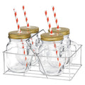 Mason Jar With Handle And Candy Stripe Straw 4 Piece Set In Caddy - 400ml