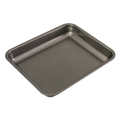 A heavy duty roasting pan is perfect for roasting chicken, meat and a variety of vegetables. It features a double non-stick coating and sloped sides for easy removal.