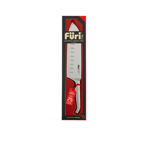 Slice through any cutting task effortlessly with the Furi Pro East West Santoku Knife. Crafted from durable Japanese stainless steel, this 20cm santoku knife ensures long-lasting sharpness with its 26° Tech Edge blade. The ergonomic handle fits comfortably in your hand, reducing fatigue and enhancing control. Say goodbye to slips and cuts with the secure grip and optimized bolster, designed to keep your fingers safe during every use.