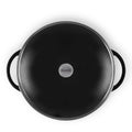 A versatile pot that is suitable for different cooking techniques - including stir frying, steaming, pan frying, deep frying, poaching, boiling, braising, searing, stewing, making soup, smoking and roasting nuts. The pot includes a glass lid, wooden tongs and chopsticks, and a stainless steel grid. This product is made in France. It provides all the benefits of cooking with cast-iron including compatibility with use of induction and other cook tops.