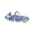 - One set comes with a four piece of a creamer, sugar, and a basket with a handle.