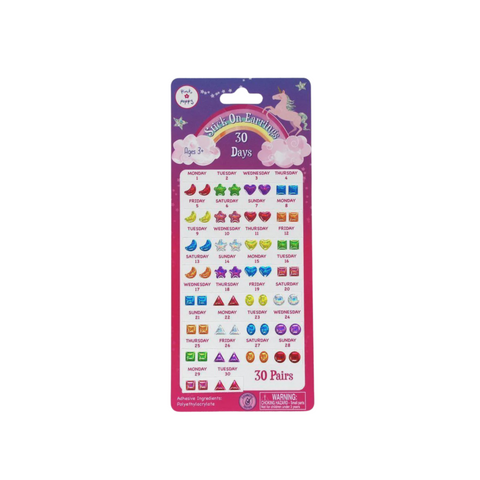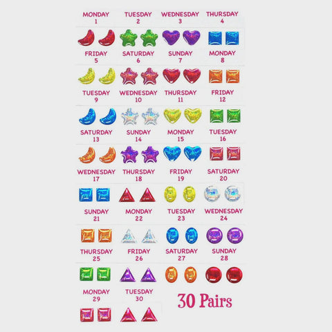 This set of 30 day stick on earrings includes colorful plastic charms that you can mix and match with all your outfits!