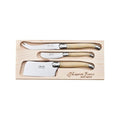 An authentic laguiole jean neron cheese set. Made in france from high-quality stainless steel, this 3 piece cheese set features a traditional cheese knife, pate knife and cleaver in a wooden gift box. This cheese set is perfect for entertaining, or indulging, and pairs beautifully with any of laguiole france's range of wooden serving boards. All authentic laguiole jean neron cutlery is made in france. Stainless steel, full-tang construction. Beautifully marbled light horn resin handles comes in a wooden gift box.