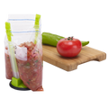 - Non-slip base Adjustable handles Will hold up plastic bags that won't hold up themself Hold different sized bags Stores flat in the kitchen drawer BPA Free Dishwasher safe