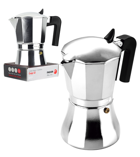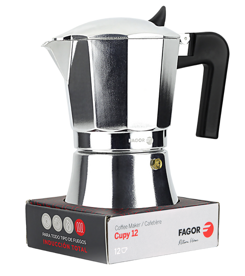 Brew heartwarming and flavourful espresso with the Fagor "Cupy" 12 Cup Aluminium Espresso Maker. The compact design is perfect for when space is scarce, with the technology savouring the characteristics of the coffee beans.