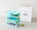 Space-saving box set in cabinets with a reasonable modular stacking design. BPA free
