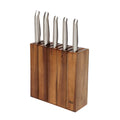 Contains: Paring Knife 9cm (3.5 inch), Serrated Multi-Purpose Knife 15cm (6 inch), East/West™ Santoku Knife 17cm (7 inch), Utility Knife 15cm (6 inch), Bread Knife 20cm (8 inch). Segmented Knife Block.