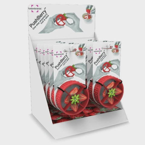 For those that love fresh strawberries, the new PushBerry is the first one-piece handheld strawberry tool that completely removes the core and slices whole fresh strawberries all in a single easy one-step motion.