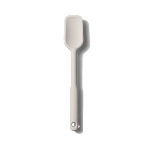 The OXO Good Grips Silicone Spoon Spatula combines everything you love from your go-to cooking spoon with the versatility you look for in your favorite spatula. Flexible, polished edges get every last drop from the sides of bowls and pots, so you get ingredients where they need to go with a lot less work. The long handle provides extra strength for tough tasks, and the soft, non-slip grip stays comfortable while you work. Dishwasher safe.