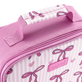 This lunch bag features an inner mesh pouch for snacks and smaller items, plus a large capacity main compartment that can fit a drink bottle upright with ease. It also includes a sturdy carry handle and built-in name tag, making this lunch bag a dependable lunchtime essential.