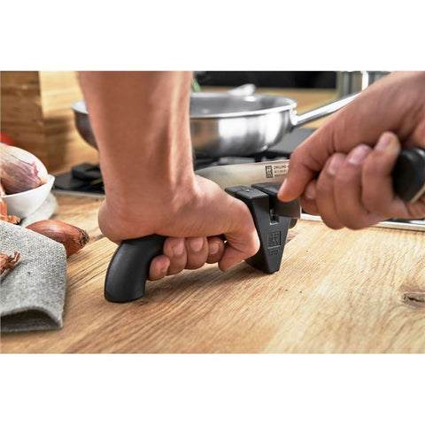 The sleek and ergonomic design of the Zwilling TWINSHARP Knife Sharpener makes it perfect for easy, every day professional quality and maintenance of your knives